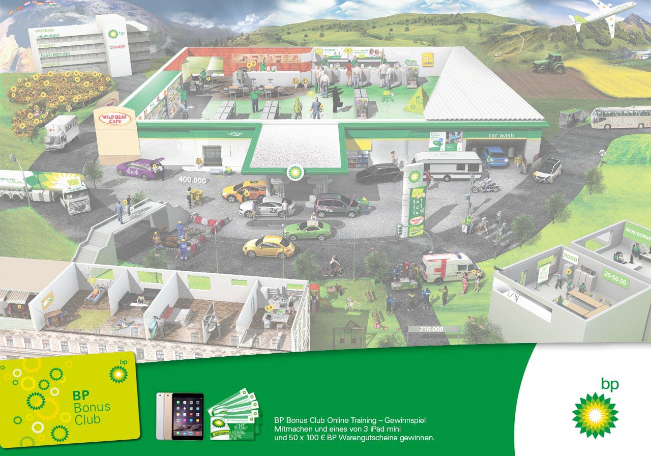 Entdecken Sie auf der interaktiven Lernlandkarte alles rund um den BP Bonus Club. Klicken Sie auf die orangen Symbole, um ein Lernvideo anzusehen. Die grünen Symbole zeigen Ihnen Informationen zum jeweiligen Lernlandkarten Bereich!